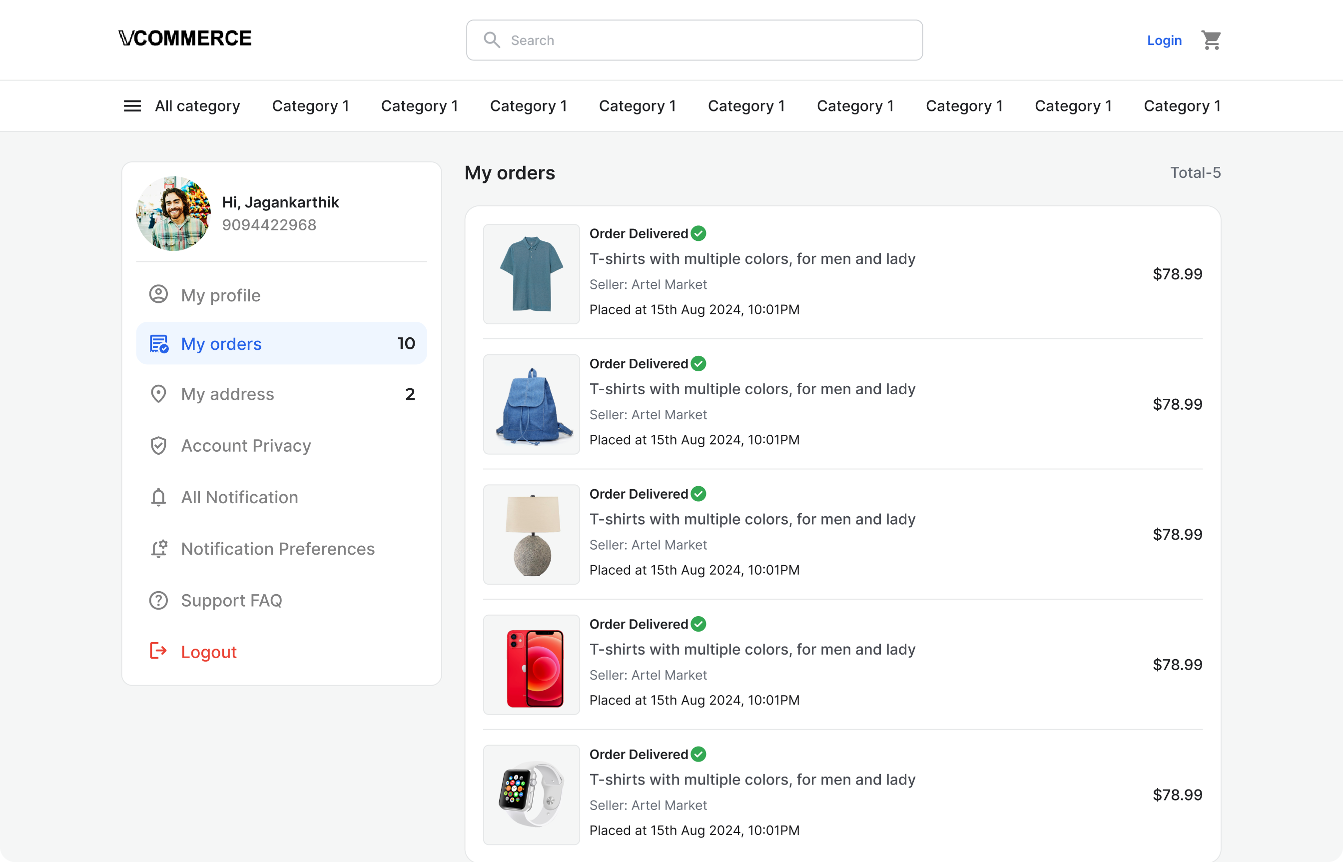 Vcommerce is a multi-tenant e-commerce platform that enables businesses to quickly create, manage, and scale their own online stores. The platform provides separate Admin and Customer portals, allowing store owners to manage products, orders, and affiliates while delivering a smooth shopping experience to customers.